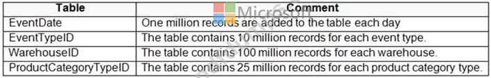 You are designing an inventory updates table in an Azure Synapse Analytics dedicated SQL pool. The table will have a clustered columnstore index and will include the following columns: