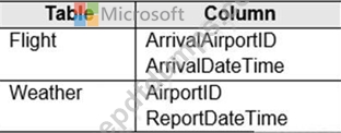 You have two fact tables named Flight and Weather. Queries targeting the tables will be based on the join between the following columns.