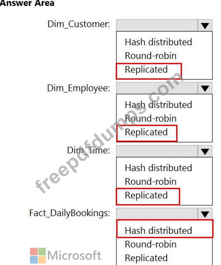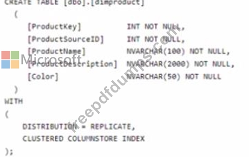 You are implementing a star schema in an Azure Synapse Analytics dedicated SQL pool.