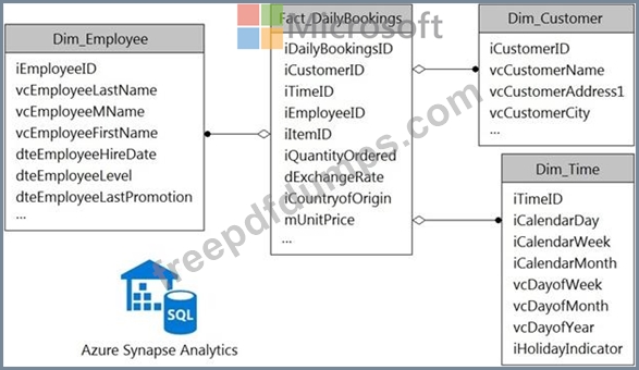 You have a data model that you plan to implement in a data warehouse in Azure Synapse Analytics as shown in the following exhibit.