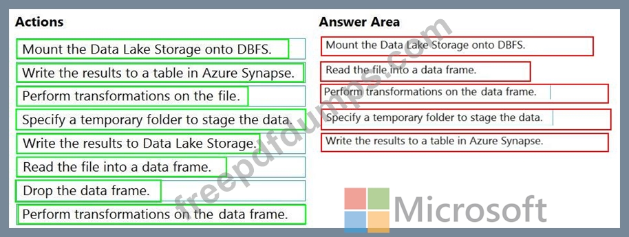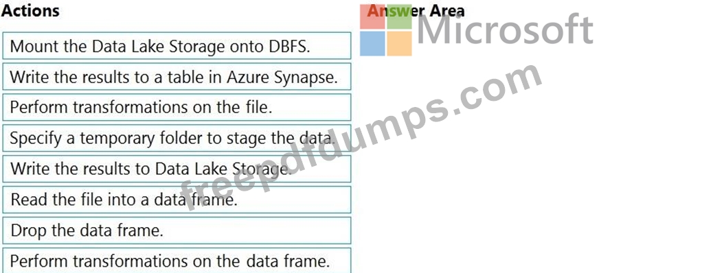 Which five actions should you perform in sequence next in is Databricks notebook? To answer, move the appropriate actions from the list of actions to the answer area and arrange them in the correct order.