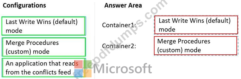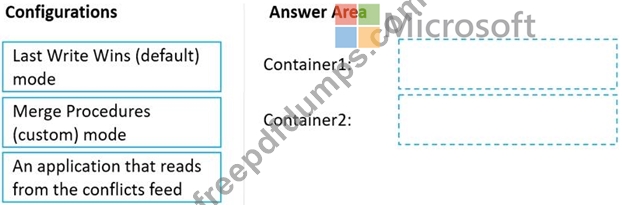 What should you configure for each container? To answer, drag the appropriate configurations to the correct containers. Each configuration may be used once, more than once, or not at all. You may need to drag the split bar between panes or scroll to view content.