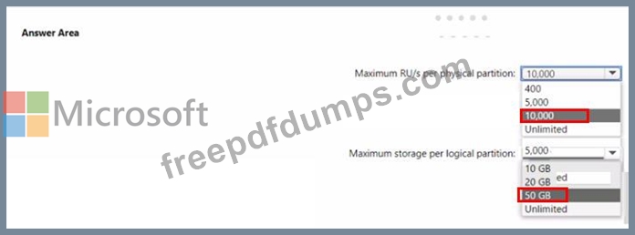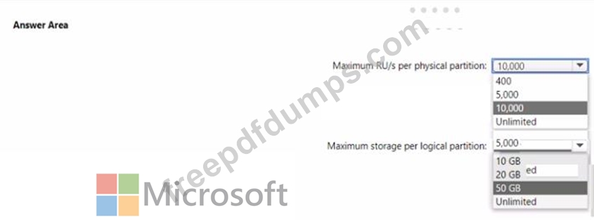 What are the partition limits for request units per second (RU/s) and storage? To answer, select the appropriate options in the answer area.