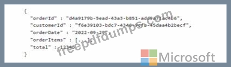 You have a container in an Azure Cosmos DB for NoSQL account that stores data about orders. The following is a sample of an order document.
