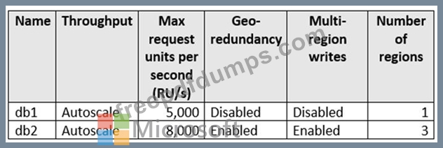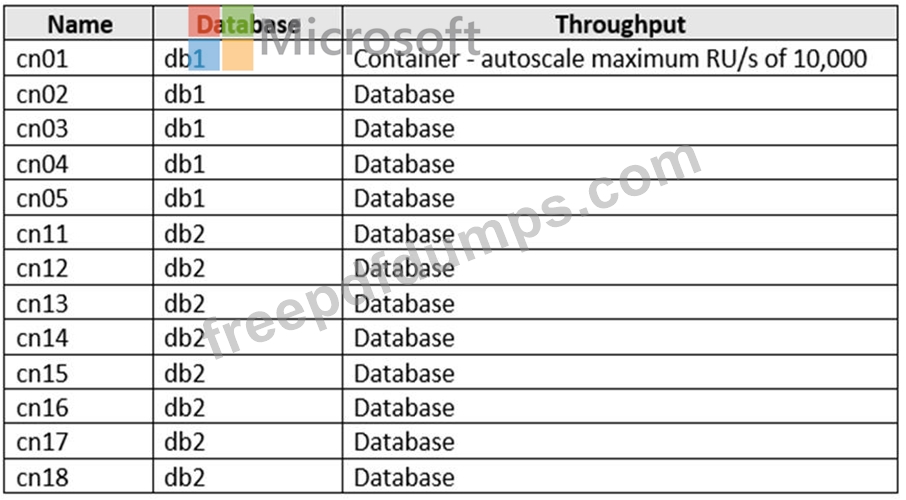 You have three containers in an Azure Cosmos DB Core (SQL) API account as shown in the following table.