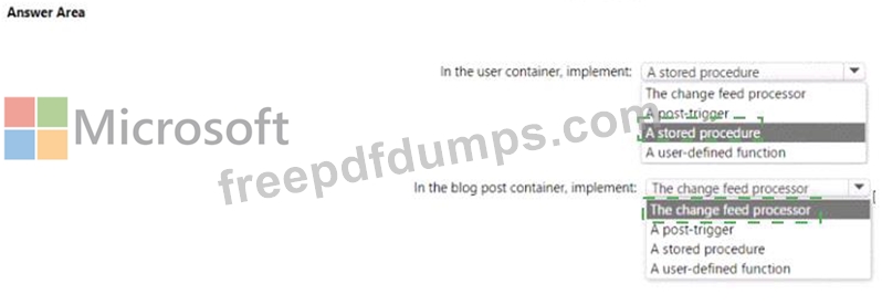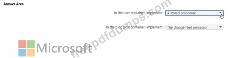 You plan to create an Azure Cosmos DB database named db1 that will contain two containers. One of the containers will contain blog posts, and the other will contain users. Each item in the blog post container will include: