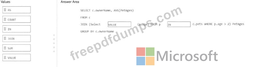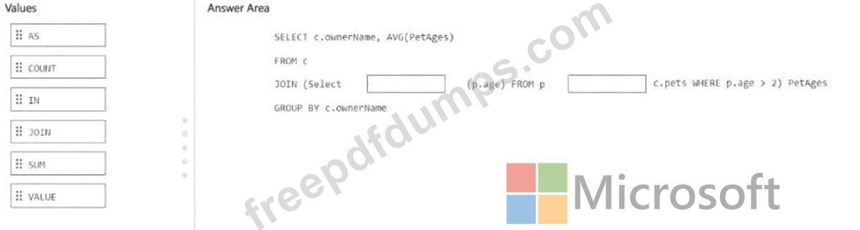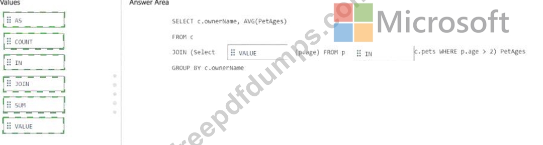 How should you complete the query? To answer, drag the appropriate values to the correct targets. Each value may be used once, more than once, or not at all. You may need to drag the split bar between panes 01 scroll to view content.