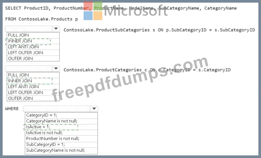 How should you complete the Apache Spark SQL code? To answer, select the appropriate options in the answer area.
