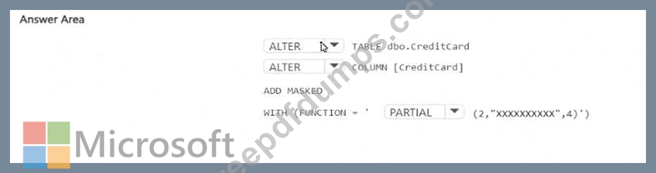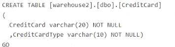 You need to ensure that the team can view only the first two characters and the last four characters of the Creditcard attribute.