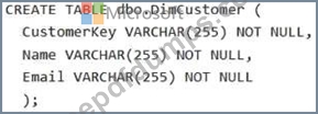 In Warehouse1, you create a table named DimCustomer by running the following statement.