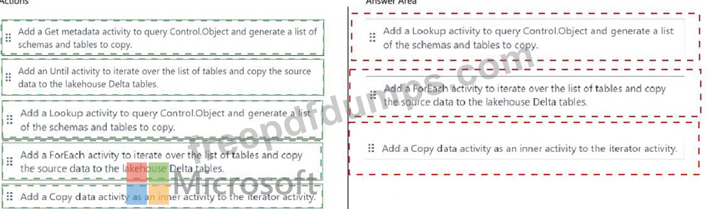 In a warehouse, you create a control table named Control.Object as shown in the exhibit. (Click the Exhibit tab.) You need to build a data pipeline that will support the dynamic ingestion of the tables listed in the control table by using a single execution.