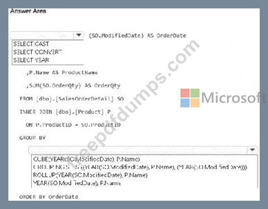 You need to create an output that presents the summarized values of all the order quantities by year and product. The results must include a summary of the order quantities at the year level for all the products.