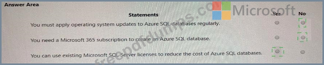 Select the answer that correctly completes the sentence.For each of the following statements, select Yes if the statement is true. Otherwise, select No. NOTE: Each correct selection is worth one point.