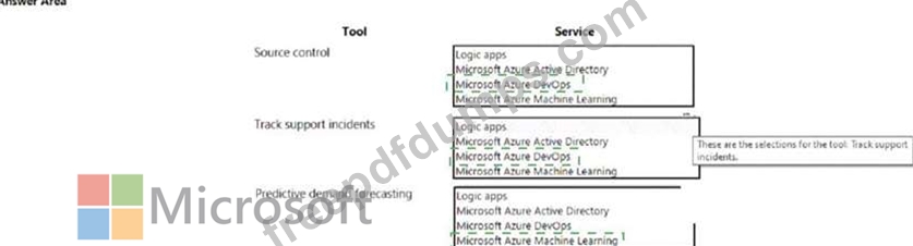 You need to help the client understand which Microsoft Azure tools to use to perform various tasks. What should you recommend? To answer, select the appropriate options in the answer area. NOTE: Each correct selection is worth one point.