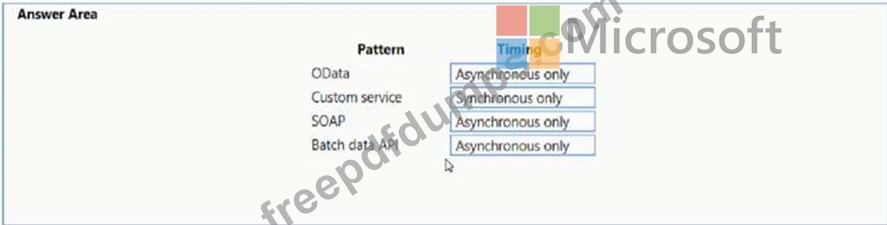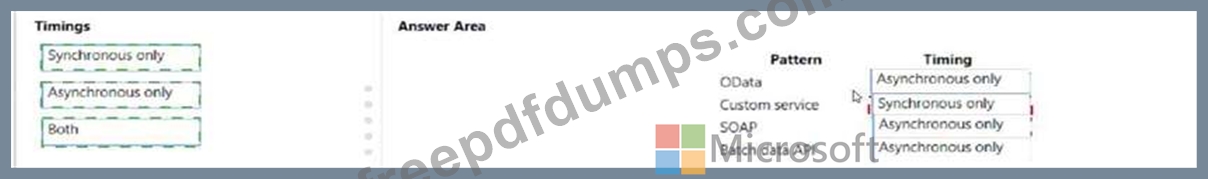What should you recommend? To answer, drag the appropriate timings to the correct patterns. Each timing may be used once, more than once, or not at all. You may need to drag the split bar between panes or scroll to view content NOTE: Each correct selection is worth one point.