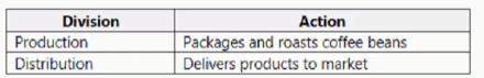 Fourth Coffee plans to implement Dynamics 365 Finance and Dynamics 365 Supply Chain Management. The company owns and operates the following divisions: