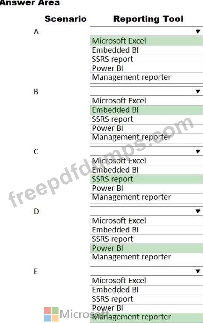A company is determining which reporting tools to use as part of a Dynamics 365 Finance implementation.