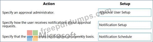 Which setup should you use? To answer, drag the appropriate setup to the correct actions. Each setup may be used once, more than once, or not at all. You may need to drag the split bar between panes or scroll to view content.