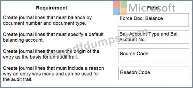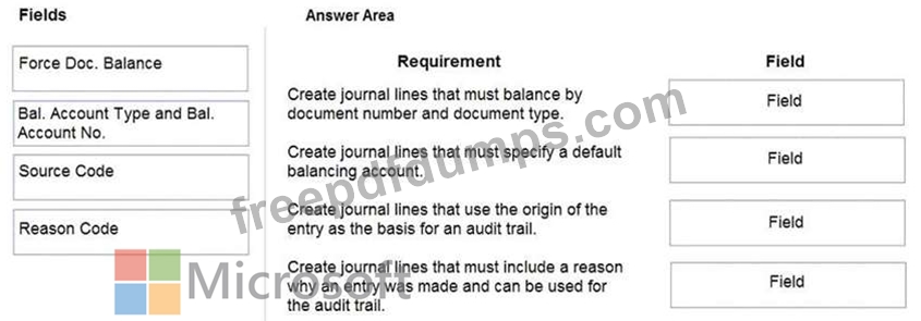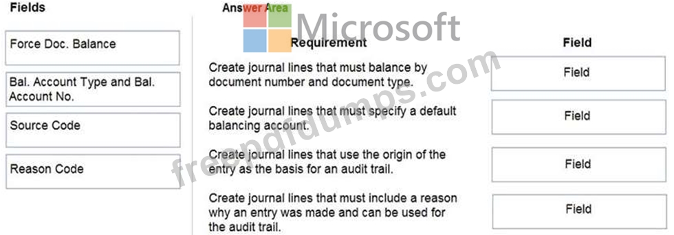 What should you do? To answer, drag the appropriate fields to the correct requirements. Each field may be used once, more than once, or not at all. You may need to drag the split bar between panes or scroll to view content.