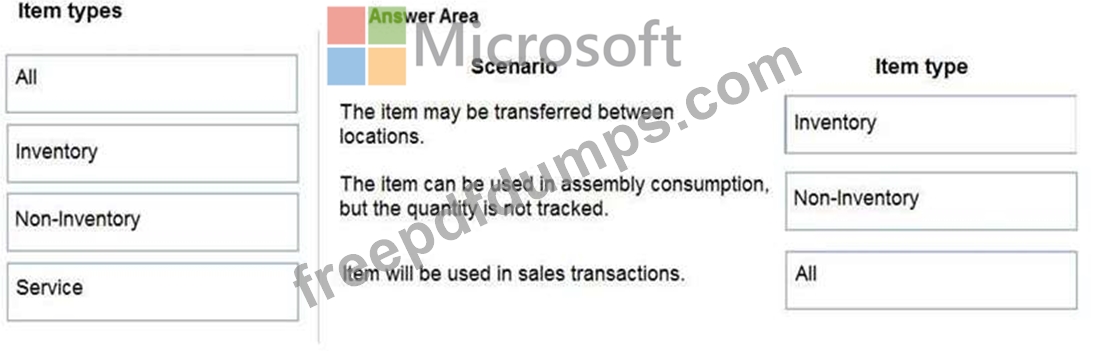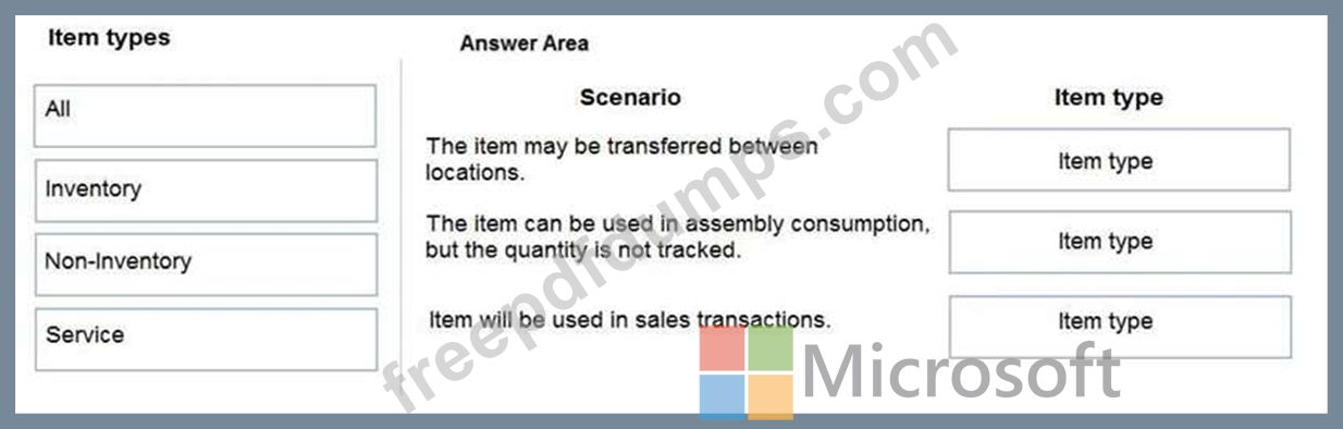 Which item types should you use? To answer, drag the appropriate item types to the correct scenarios.