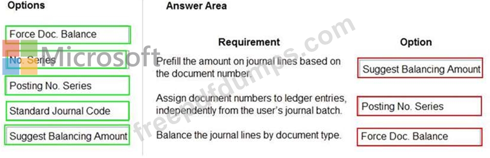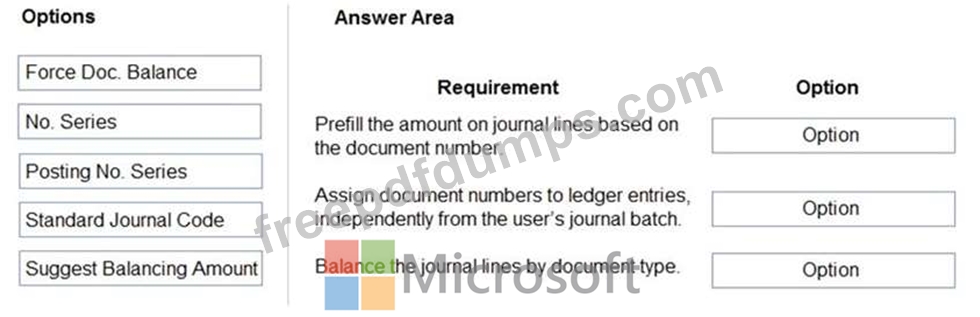 Which options should you use? To answer, drag the appropriate options to the correct requirements. Each option may be used once, more than once, or not at all. You may need to drag the split bar between panes or scroll to view content.