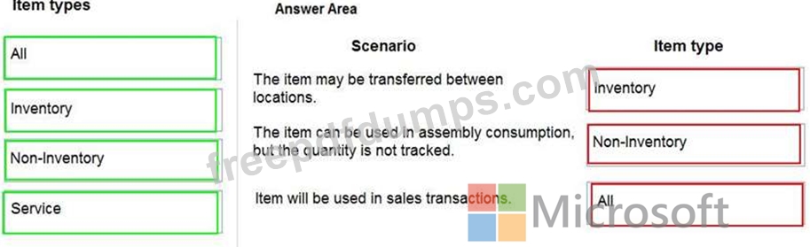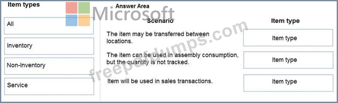 Which item types should you use? To answer, drag the appropriate item types to the correct scenarios. Each item type may be used once, more than once, or not at all. You may need to drag the split bar between panes or scroll to view content.