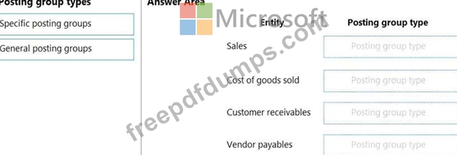 Which type of posting groups should you create? To answer, drag the appropriate posting group types to the correct entities. Each posting group type may be used once, more than once, or not at all. You may need to drag the split bar between panes or scroll to view content.