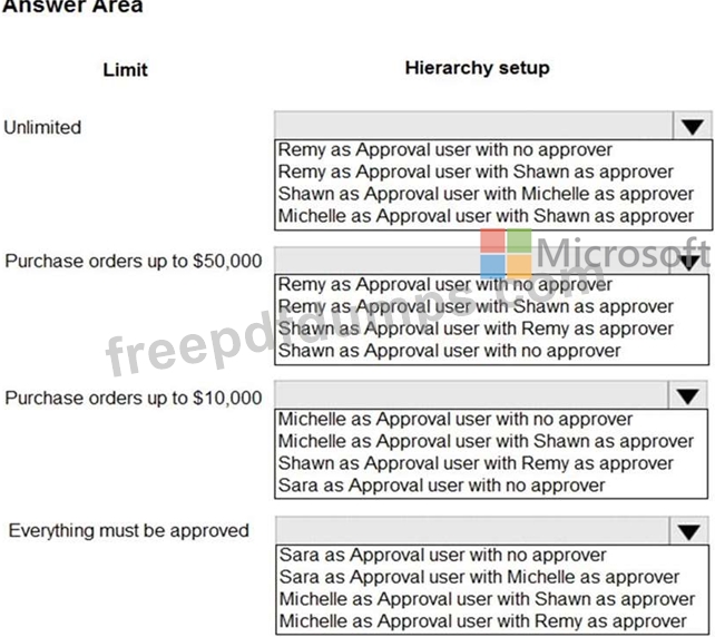 Which hierarchy setup should be used for each limit? To answer, select the appropriate options in the answer area.