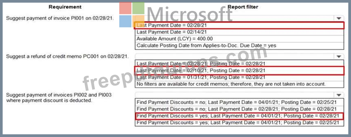 A company implements Dynamics 365 Business Central. You record the following vendor ledger entries for a vendor. You record dates by using the following format: month/date/year.