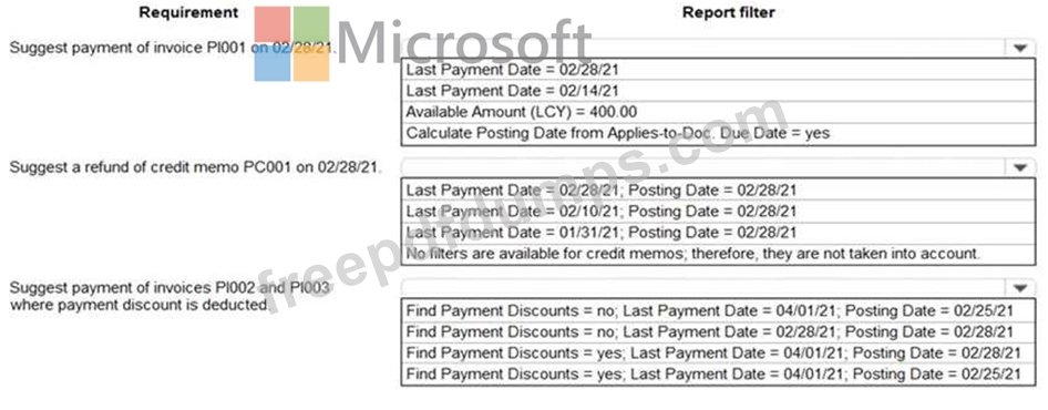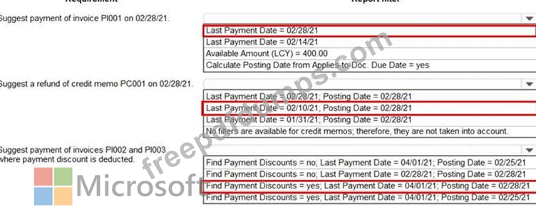 A company implements Dynamics 365 Business Central. You record the following vendor ledger entries for a vendor. You record dates by using the following format: month/date/year.