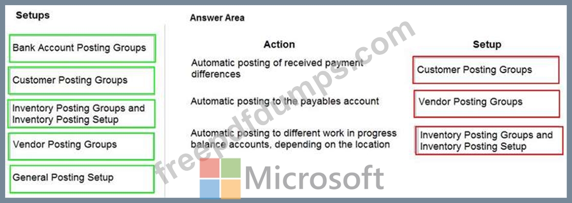 Which setup should you use? To answer, drag the appropriate setup to the correct action. Each setup may be used once, more than once, or not at all. You may need to drag the split bar between panes or scroll to view content.