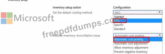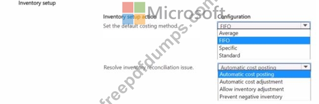 Which two inventory setup configurations should you use? To answer, select the appropriate options in the answer area.
