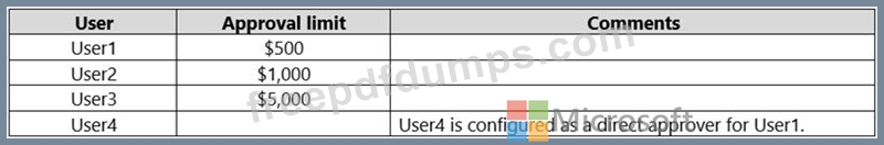 You create and enable an approval workflow. You configure the workflow to use the approver limit type Approver Chain.