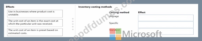 What should you describe for each costing method? To answer, move the appropriate effect to the correct costing method. You may use each effect once, more than once, or not at all. You may need to move the split bar between panes or scroll to view content.