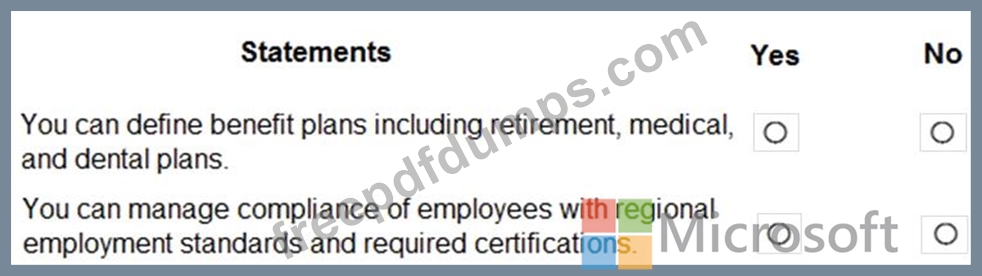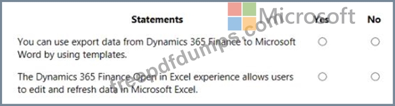 Instructions: For each of the following statements, select Yes if the statement is true. Otherwise, select No.