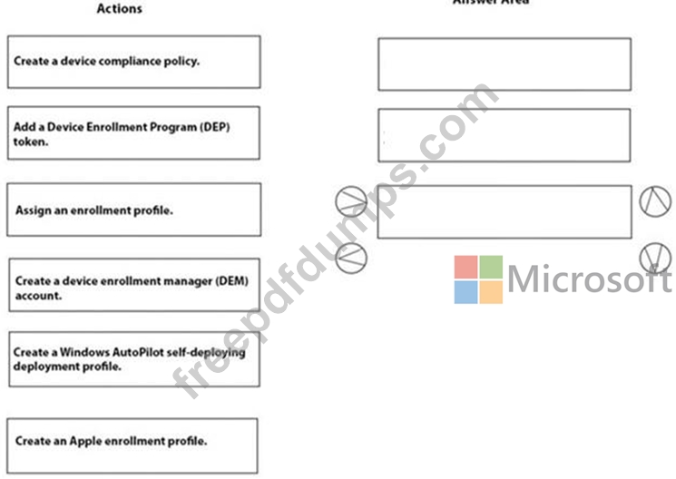 Which three actions should you perform in sequence? To answer, move the appropriate actions from the list of actions to the answer area and arrange them in the correct order.