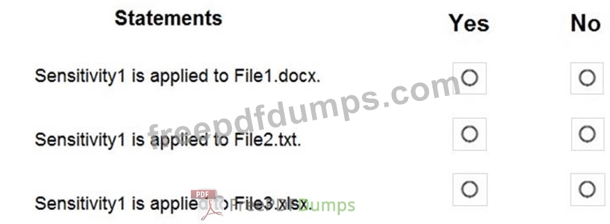 You have a Microsoft 365 E5 tenant that contains a Microsoft SharePoint Online site named Site1. Site1 contains the files shown in the following table.