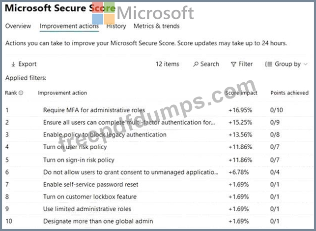 The Microsoft Secure Score for the tenant is shown in the following exhibit.