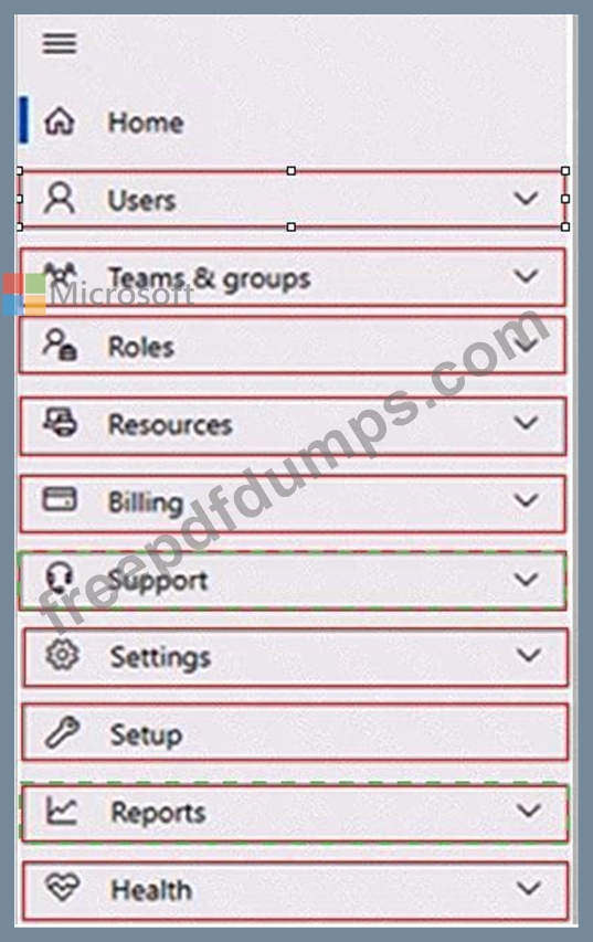 Which two options should you use in the Microsoft 365 admin center? To answer, select the appropriate options in the answer area.