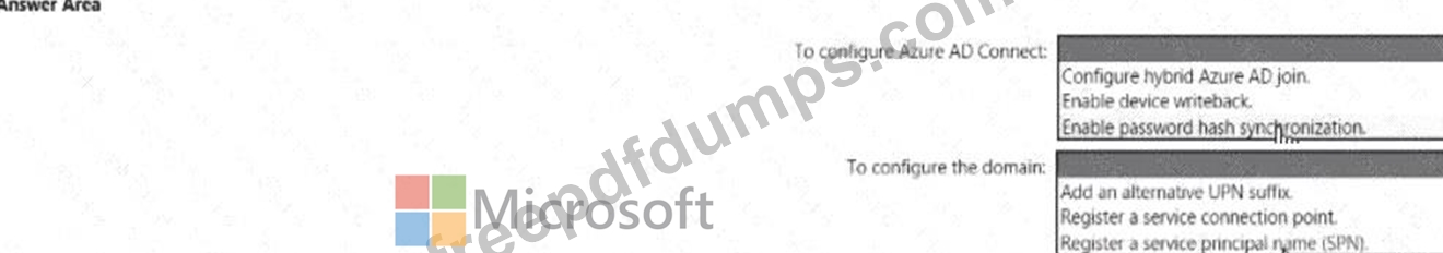 You use Azure AD Connect to sync user objects and group objects to Azure Directory (Azure AD) Password hash synchronization is disabled.