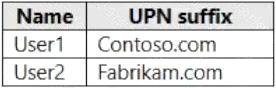 Your network contains an on-premises Active Directory domain named contoso.com. The domain contains the users shown in the following table.