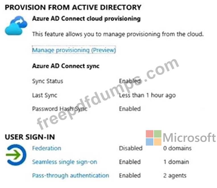 The domain syncs to an Azure AD tenant named contoso.com as shown in the exhibit. (Click the Exhibit tab.)