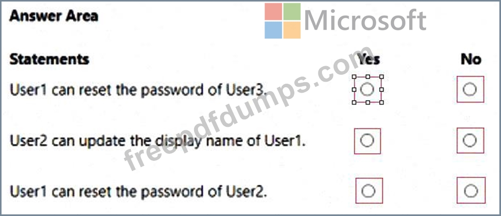 You enable self-service password reset (SSPR) for Group1. You configure security questions as the only authentication method for SSPR.