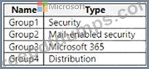 You have a Microsoft 365 E5 subscription that contains the groups shown in the following table.