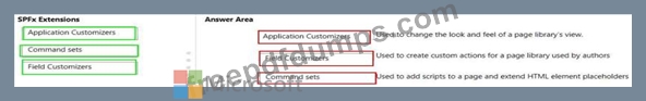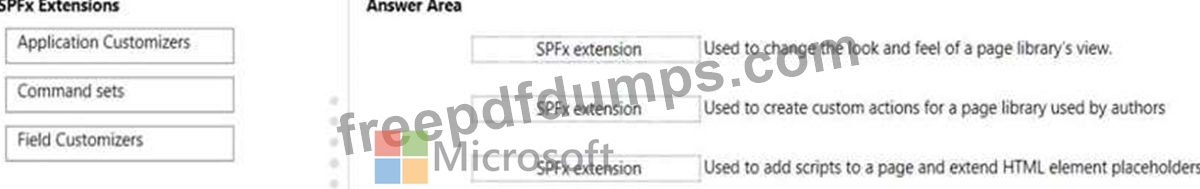 To answer, drag the appropriate SPFx extension from the column on the left to its description on the right. Each SPFx extension may be used once, more than once, or not at all.