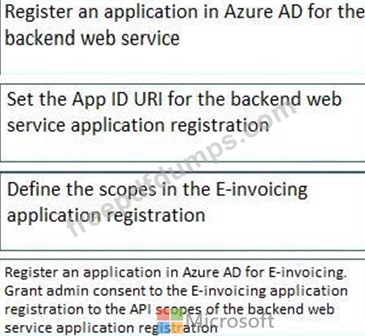 Which four actions should you perform in sequence? To answer, move the actions from the list of actions to the answer area and arrange them in the correct order.