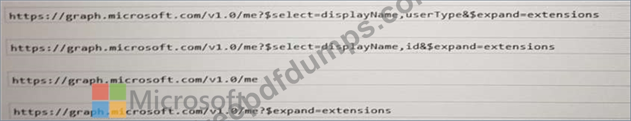 You are developing a mobile application that will display the current signed-in user's display name and the application settings. The application settings are stored as Microsoft graph extension of the user profile.