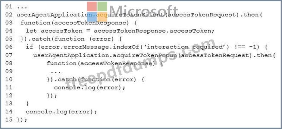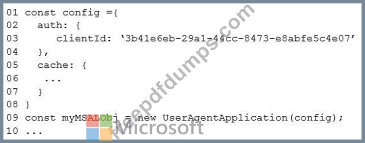 You plan to implement SSO with Microsoft Authentication Library (MSAL) by using the following code: