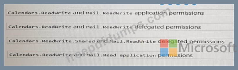 You are developing a serveries application that reads all the emails in the Inbox of a specific Microsoft 365 mailbox. Some emails contain meeting dates and room mailbox names. The application has the following requirements: