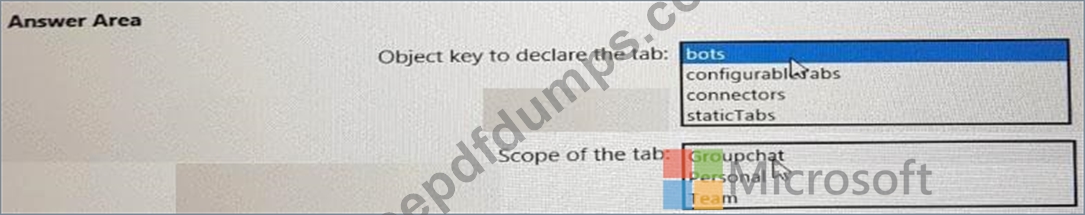 You are building a new tab as part of a new Microsoft Teams application. Users will experience the tab privately.